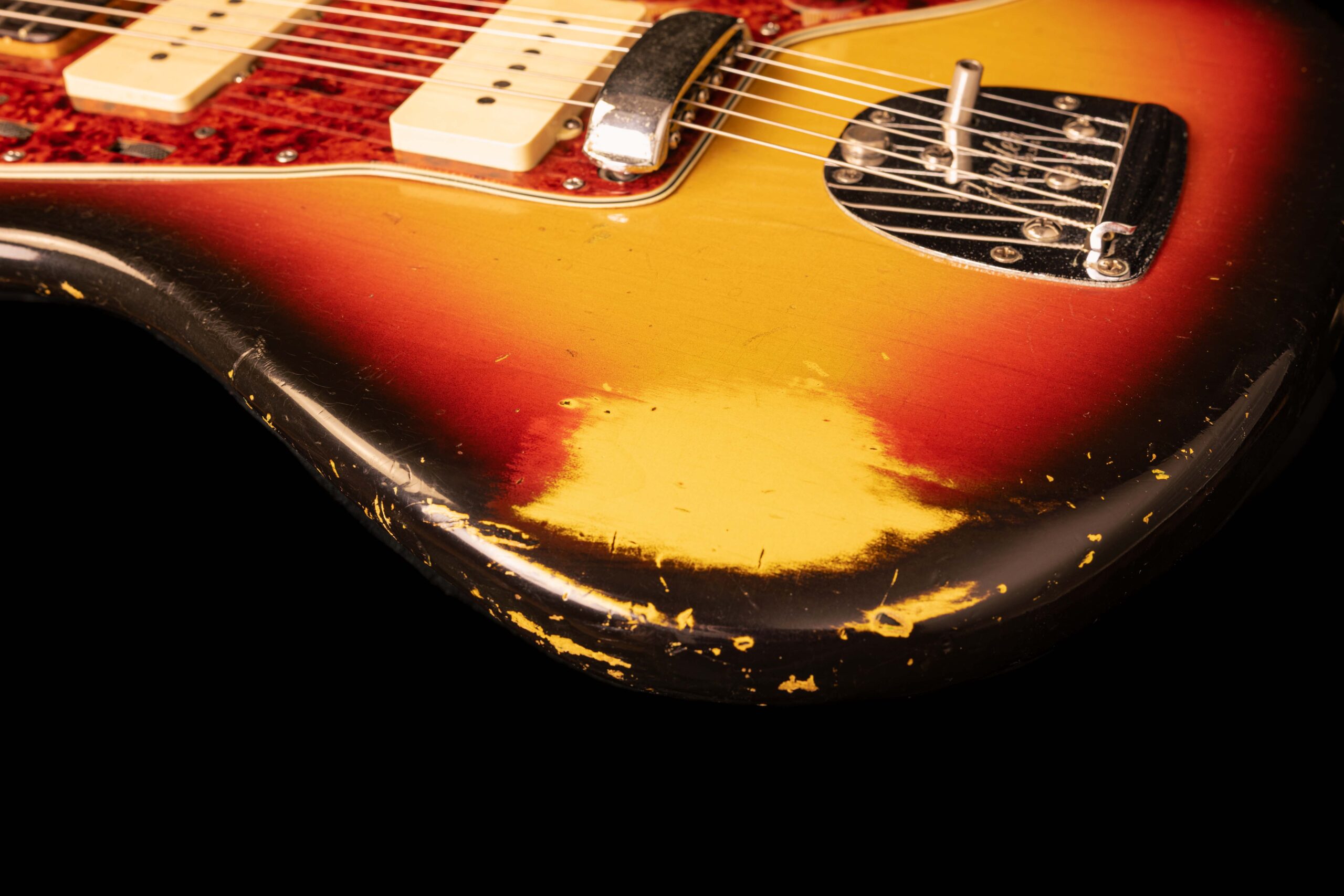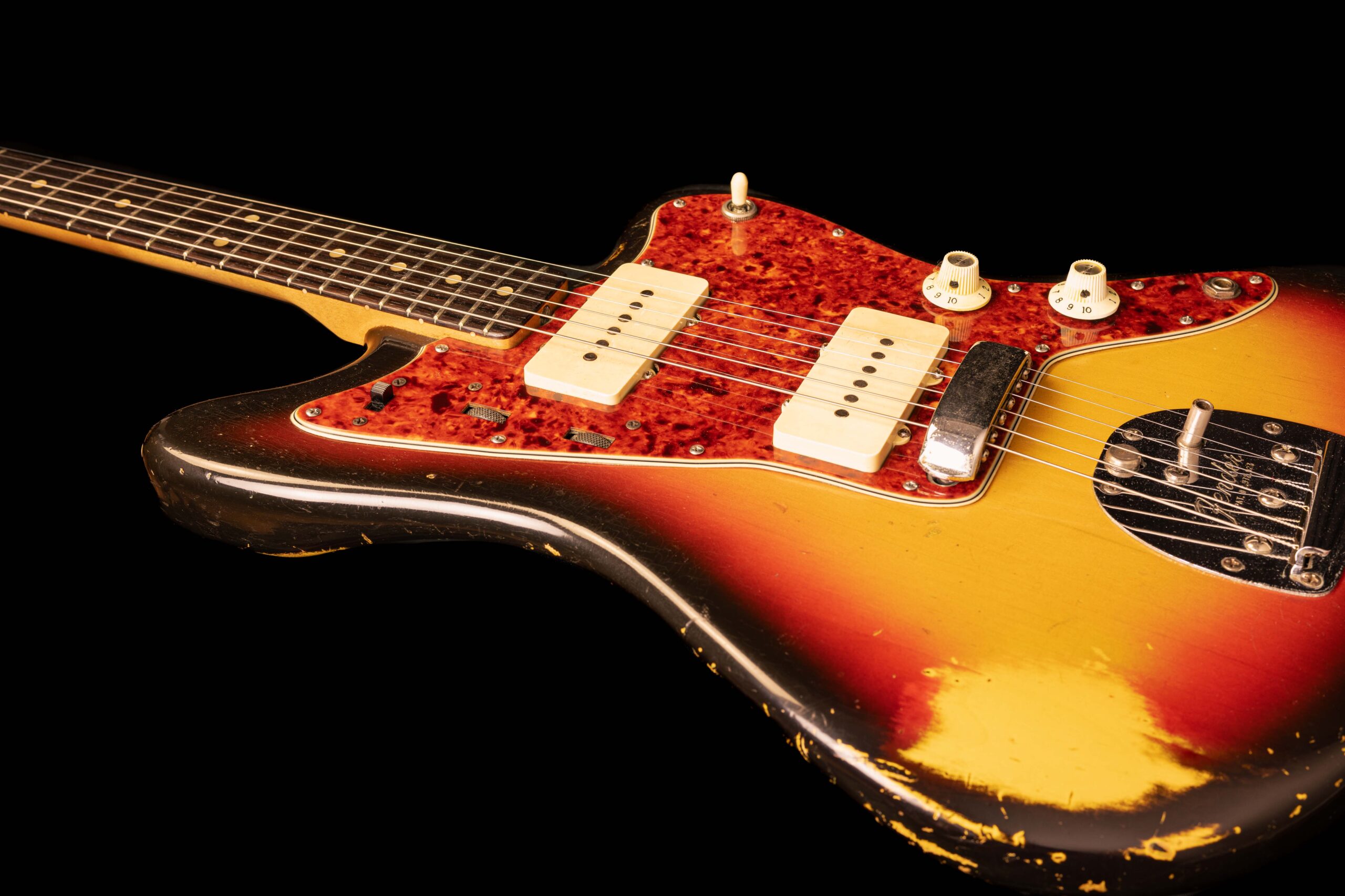 Here we have one of the most sought after vintage guitars: A 1965 Fender Jazzmaser in the classic 3-Color Sunburst finish.