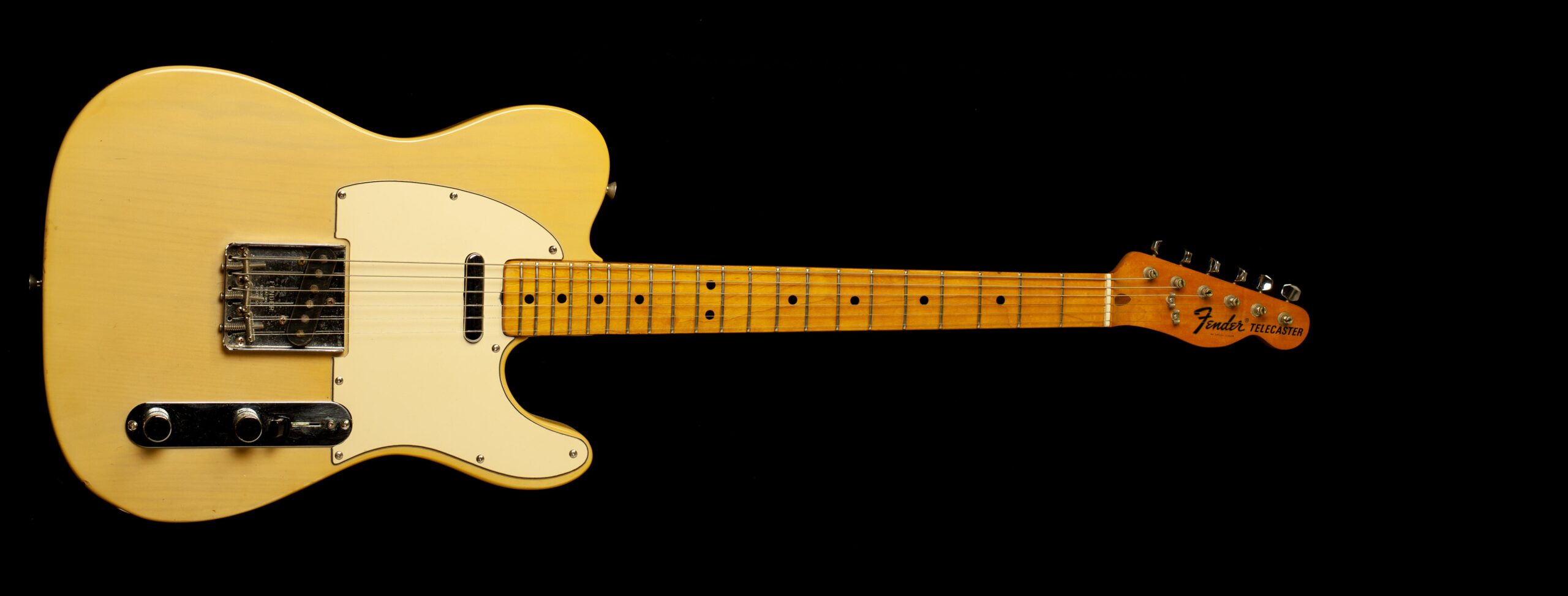 Vintege Telecaser from 1975. Original hardware except for the newer “threaded steel” saddles. The neck pickup is a vintage Fender made in Japan Tele single-coil. In the bridge position is the original Tele pickup. Pickguard and the pickguard screws are probably replacements and the pickup selector switch has been replaced with a high quality “CRL” switch. Overall in very good condition, light and with a dry twangy Tele sound. Including original Fender Case.