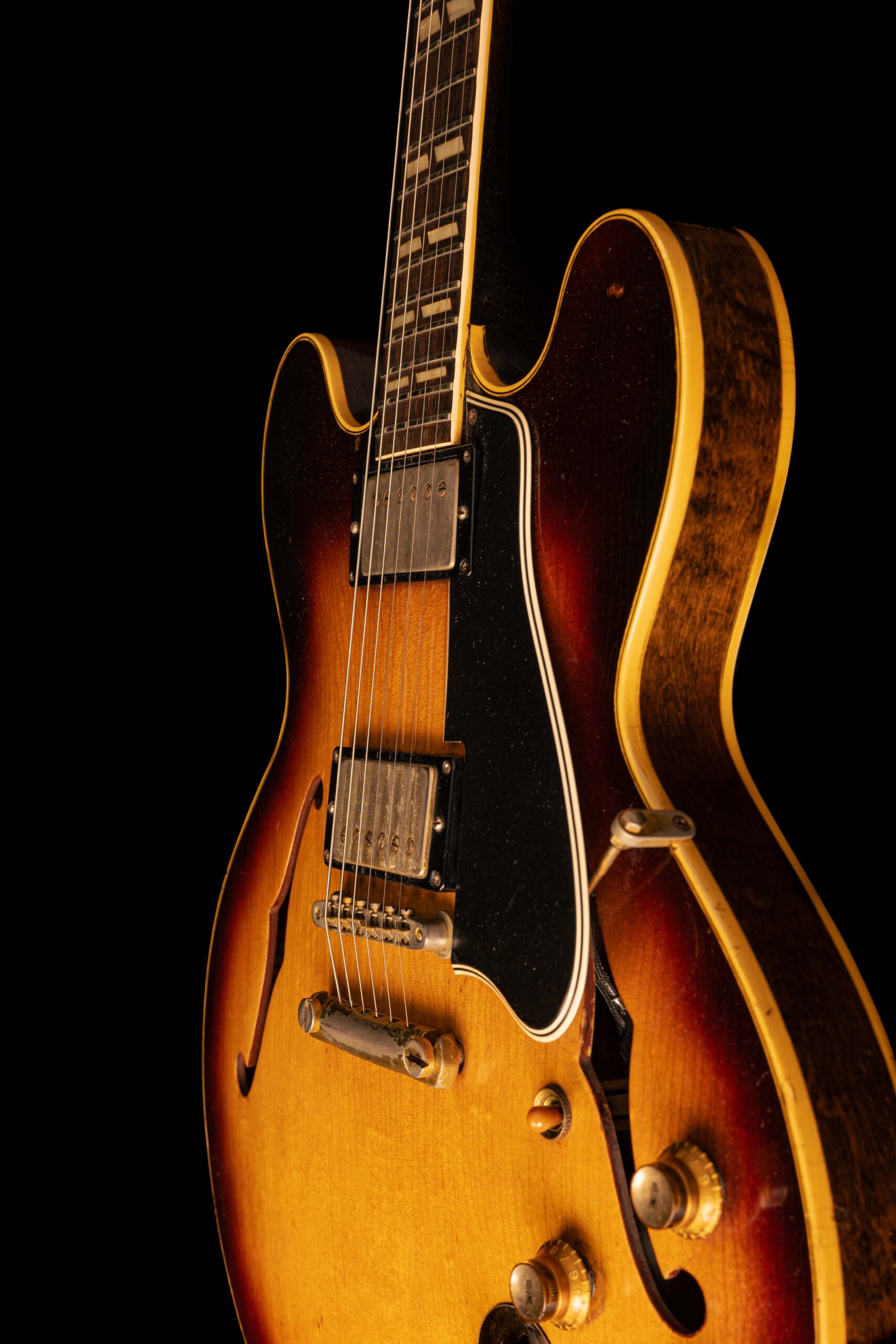 One of the greatest guitars and a real gem in our store. A gorgeous Gibson ES-345 TD in a beautiful tobacco sunburst with fantastic patina and a ton of mojo, fitted with the original legendary PAF’s. The guitar was delivered new in the popular stop tail configuration and never had a tremolo fitted.