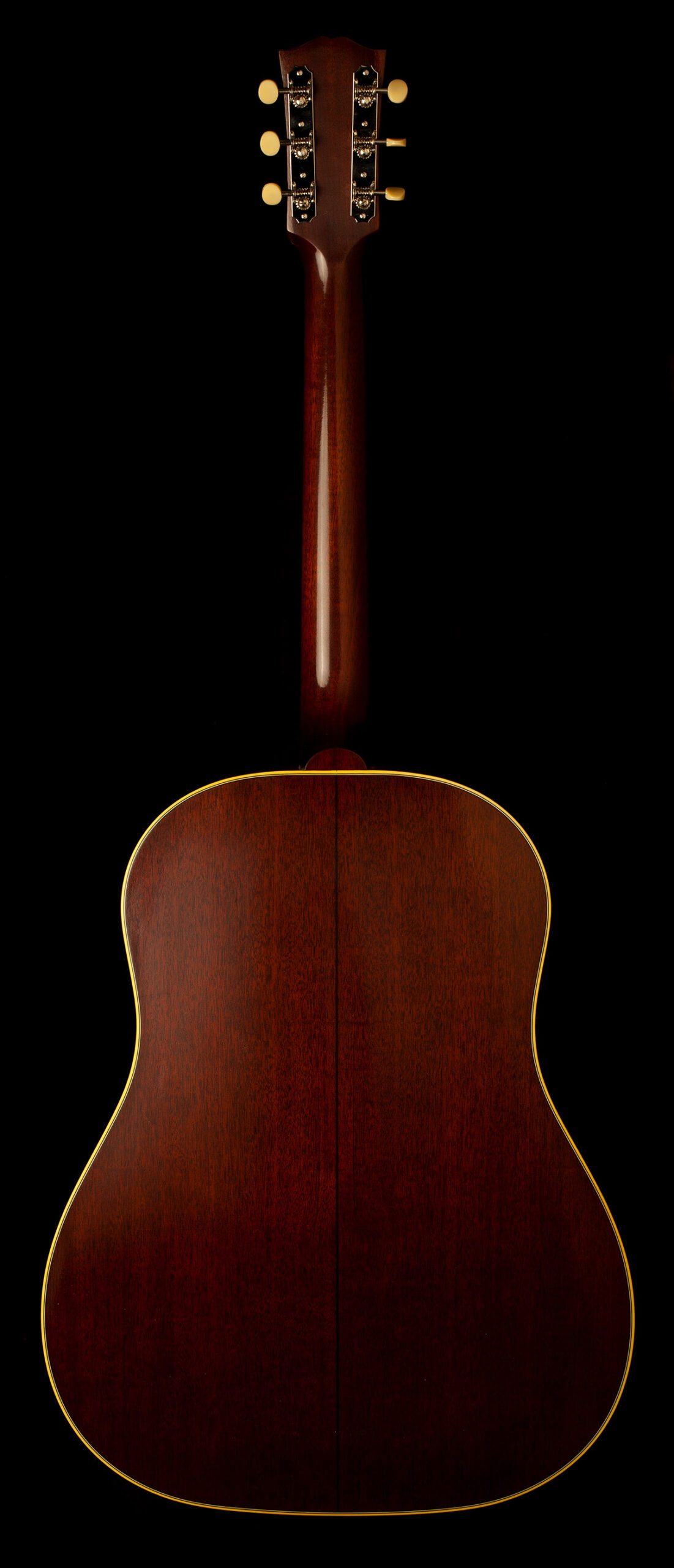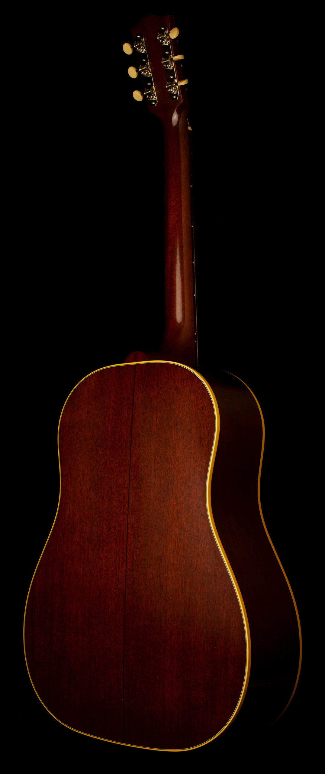 Inspired by the holy grail of vintage acoustic guitars. This J-45 is a detailed replica of a 1942 Gibson J-45, made in Bozeman Montana. Bone glue construction, hand-scalloped red spruce bracings, a thermally treated sitka spruce top and a very thin nitro finish. The result is a piano-like sound with powerful mids and treble rich in overtones. What’s more, thanks to strict selection of the woods, this J-45 weighs just 1.8kg!