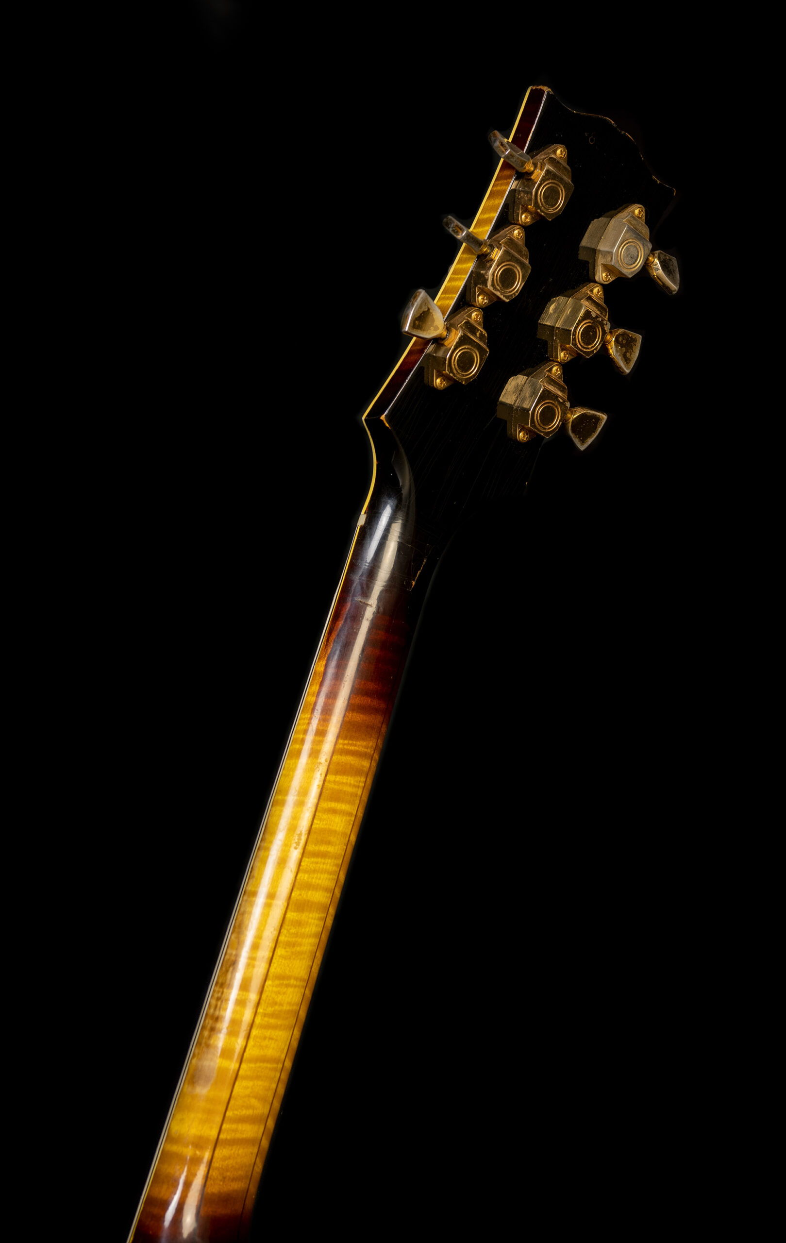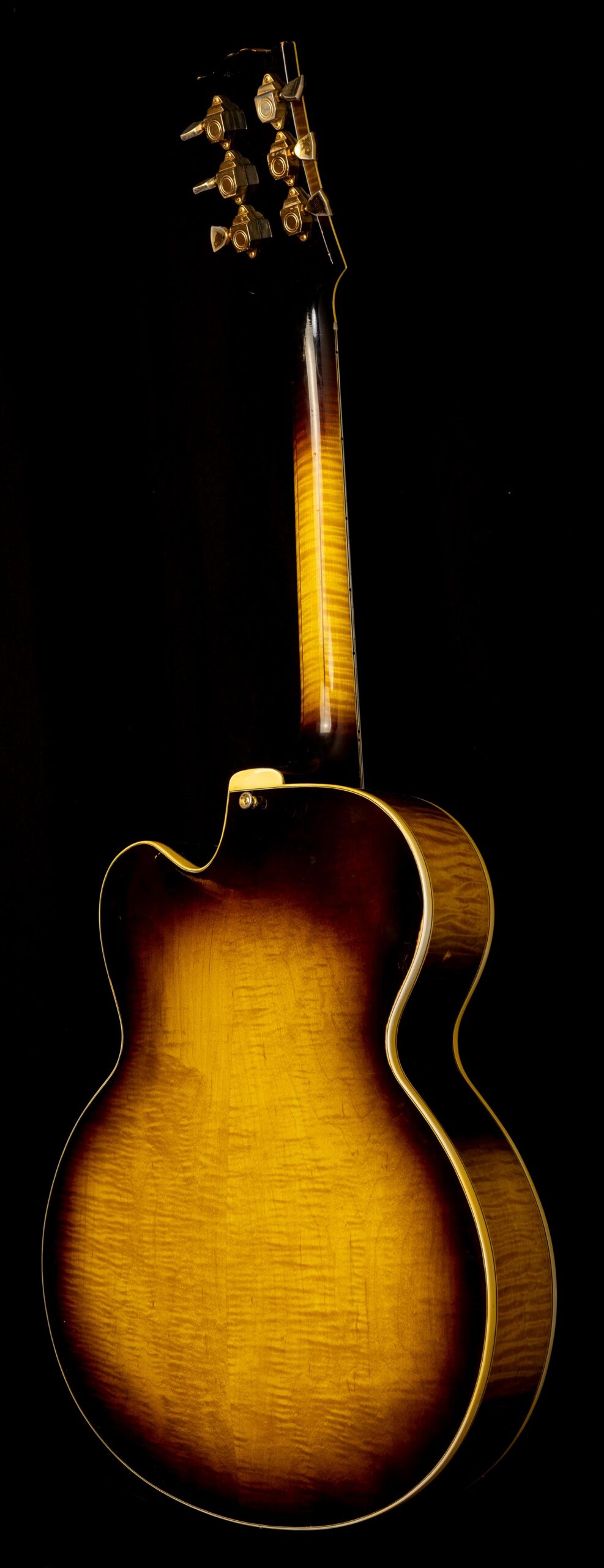 The carved spruce top is slightly thicker than that of the L-5 which gives more control when playing on the amplifier. The neck made of flamed maple lies extremely well in the hand and shows practically no rough playing marks. Including the original Lifton case.