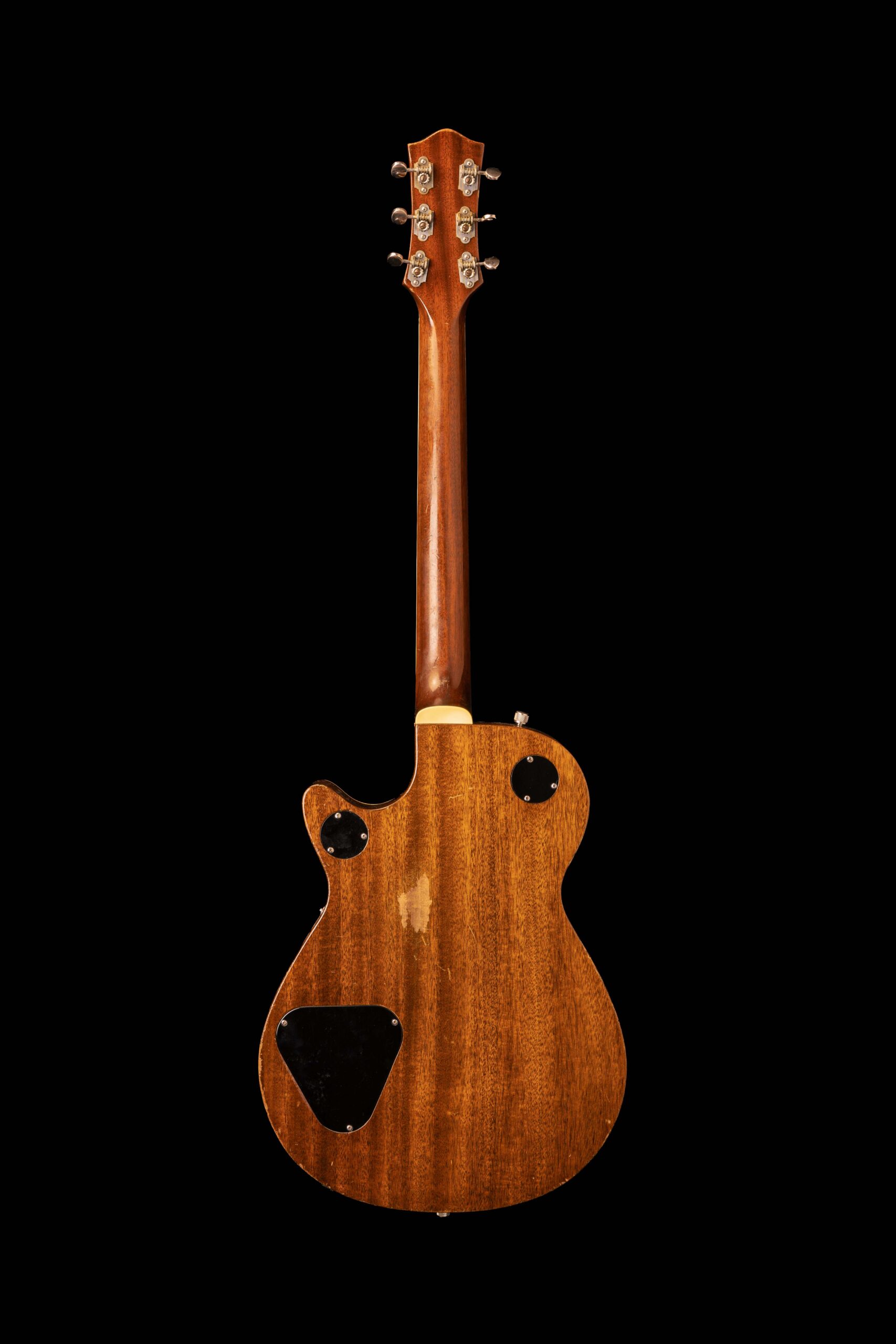One of the first 150 Gretsch 6128 Duo Jets produced which bear the famous “Scrip Logo”. This guitar is completely in original condition including a heavily worn but still sturdy tweed case from 1954. The guitar was considered a groundbreaking innovation at Gretsch, because although it looked like a solidbody, it was constructed like a classic hollowbody, which set new standards in terms of weight, sound characteristics and handling. With its unique tone, it is reminiscent of the music of Hank Garland, the Rock’a’Billy legends Cliff Gallup of Gene Vincent and his Blue Caps or the early sounds of the Beatles, as it was one of George Harrison’s favorite instruments. Legend has it that the Duo Jet was Harrison’s first “good” guitar.