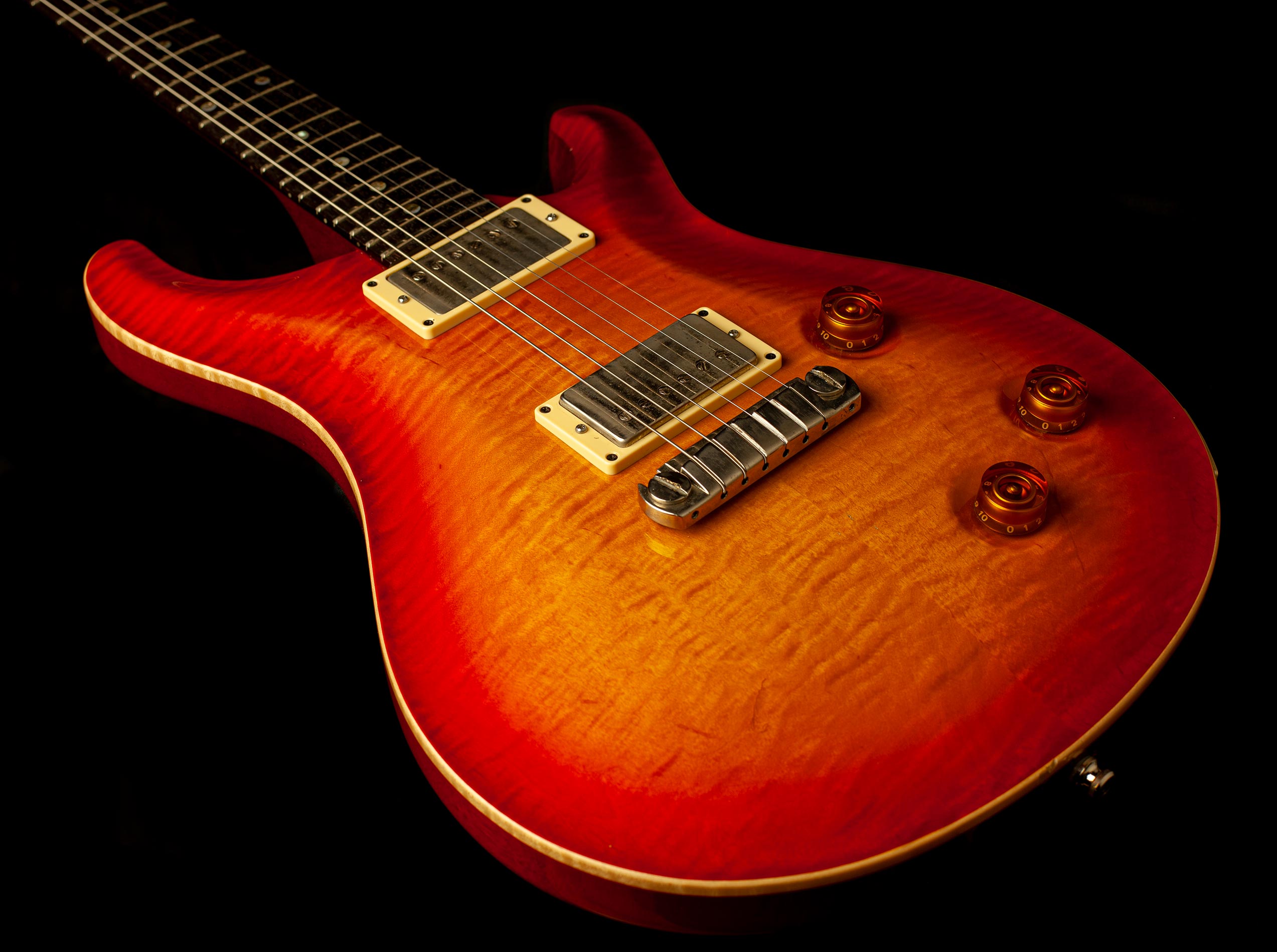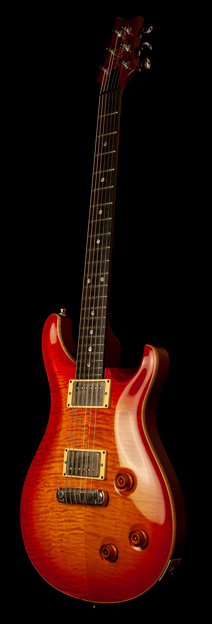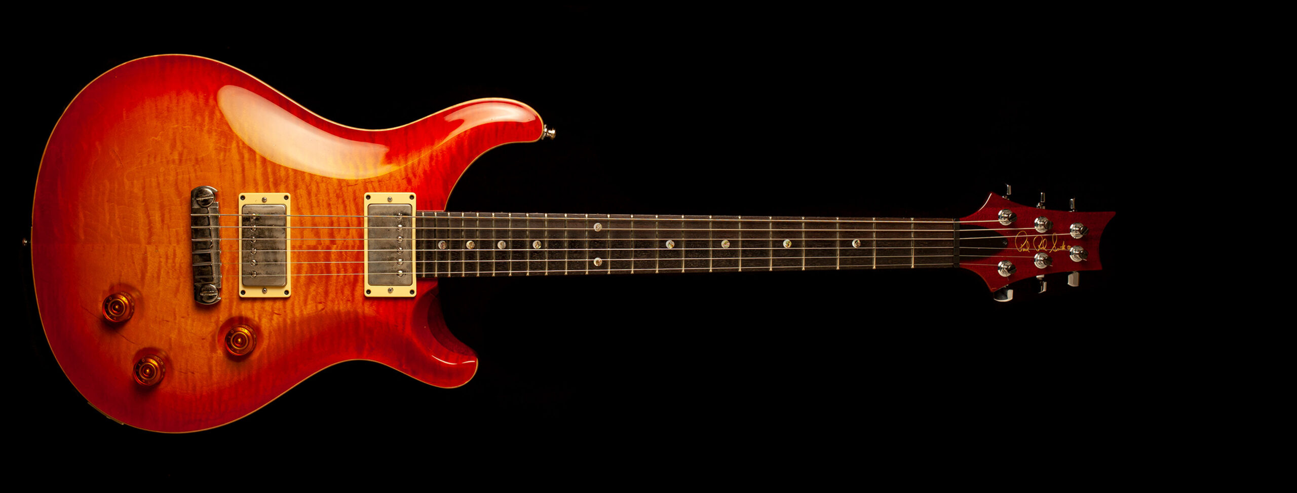 Der klassiker von Paul Reed Smith mit mahogany body, figured maple top, mahogany neck und schön dunkler palisanderhals mit „Moon“ inlays.