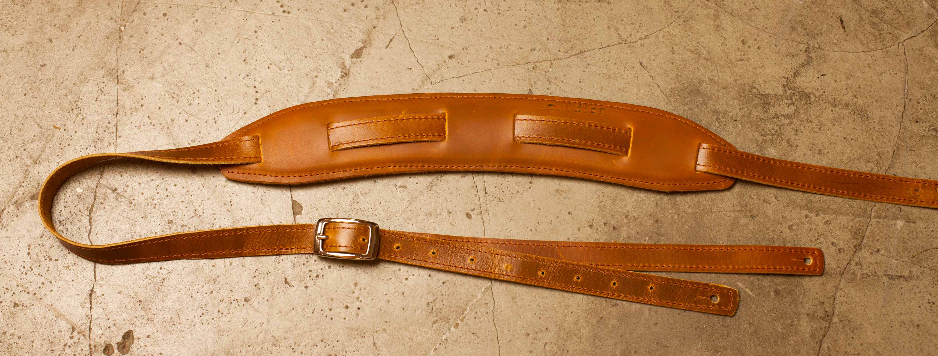 Souldier Saddle Strap Plain Rust. Verstellbarer Gitarrengurt aus Leder für Bass, elektrische- und akustische Gitarre. Handgemacht in Chicago.
