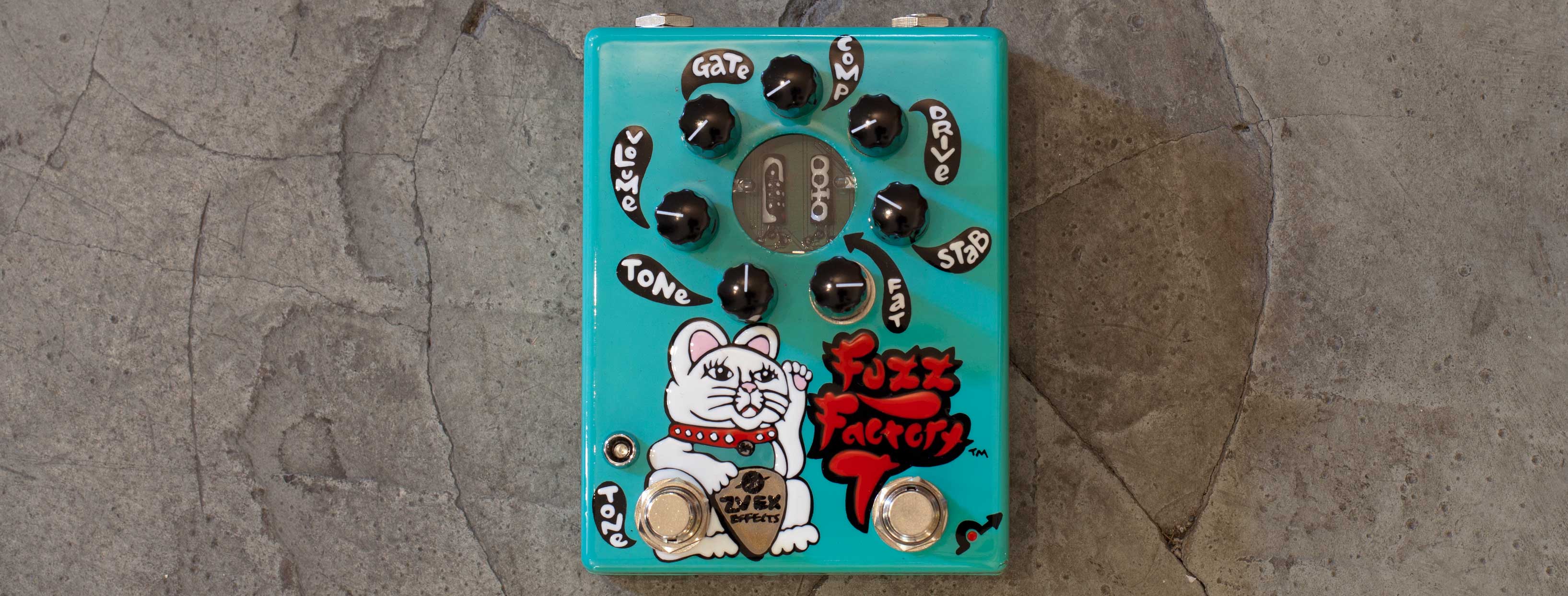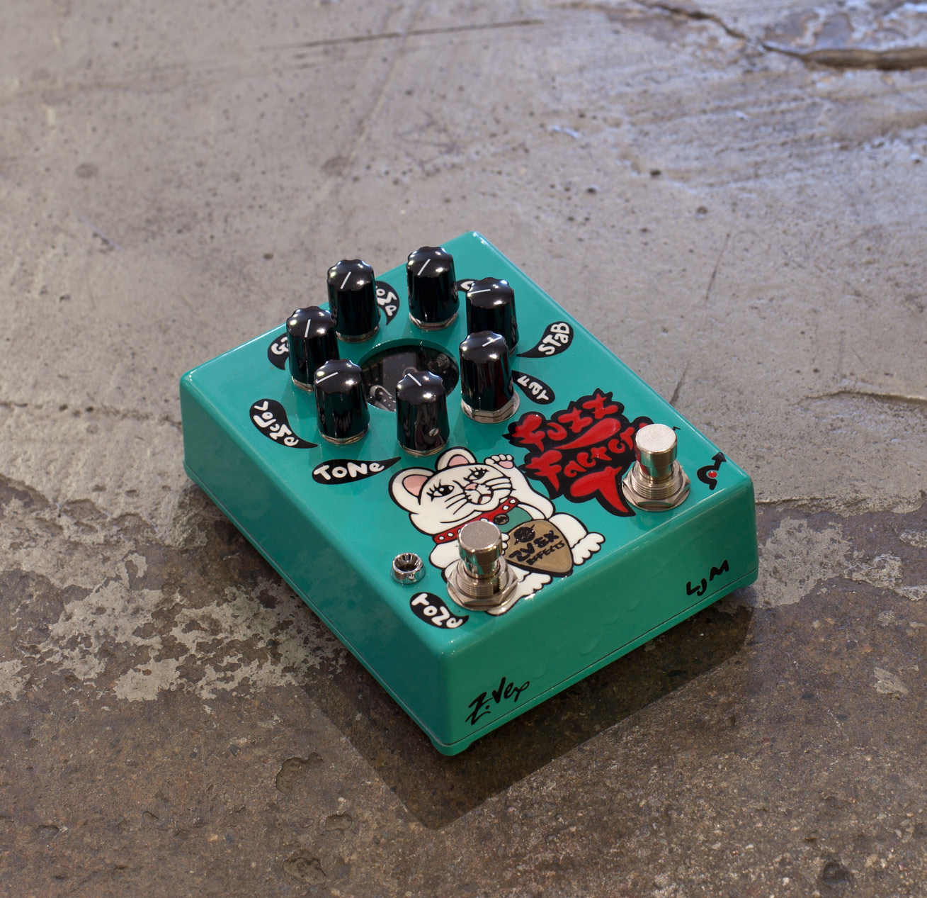 Für diese limitierte Fuzz Factory verwendet Zvex new old stock black glass germanium Transistoren. Der 9 Position Rotaryswitch bietet von fett, bassigen wummersounds zu zischendem, ohrenbetäubenden Fuzz.